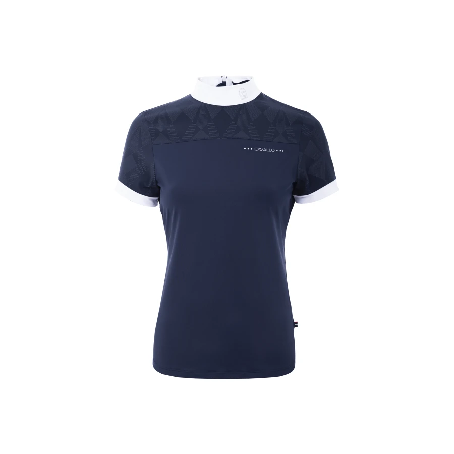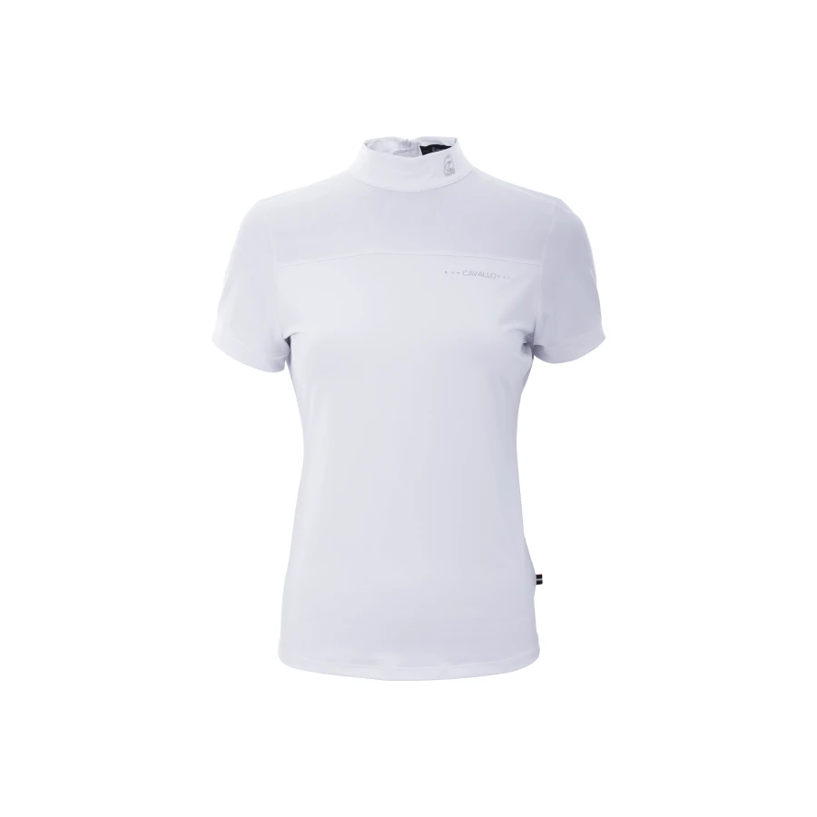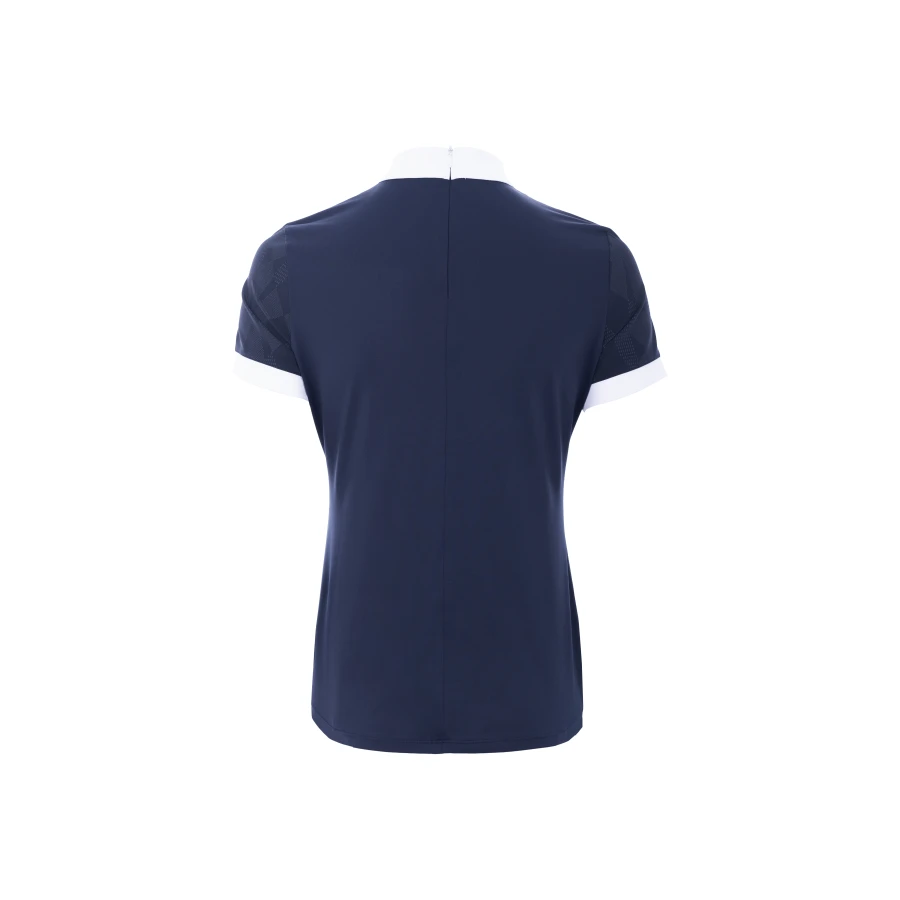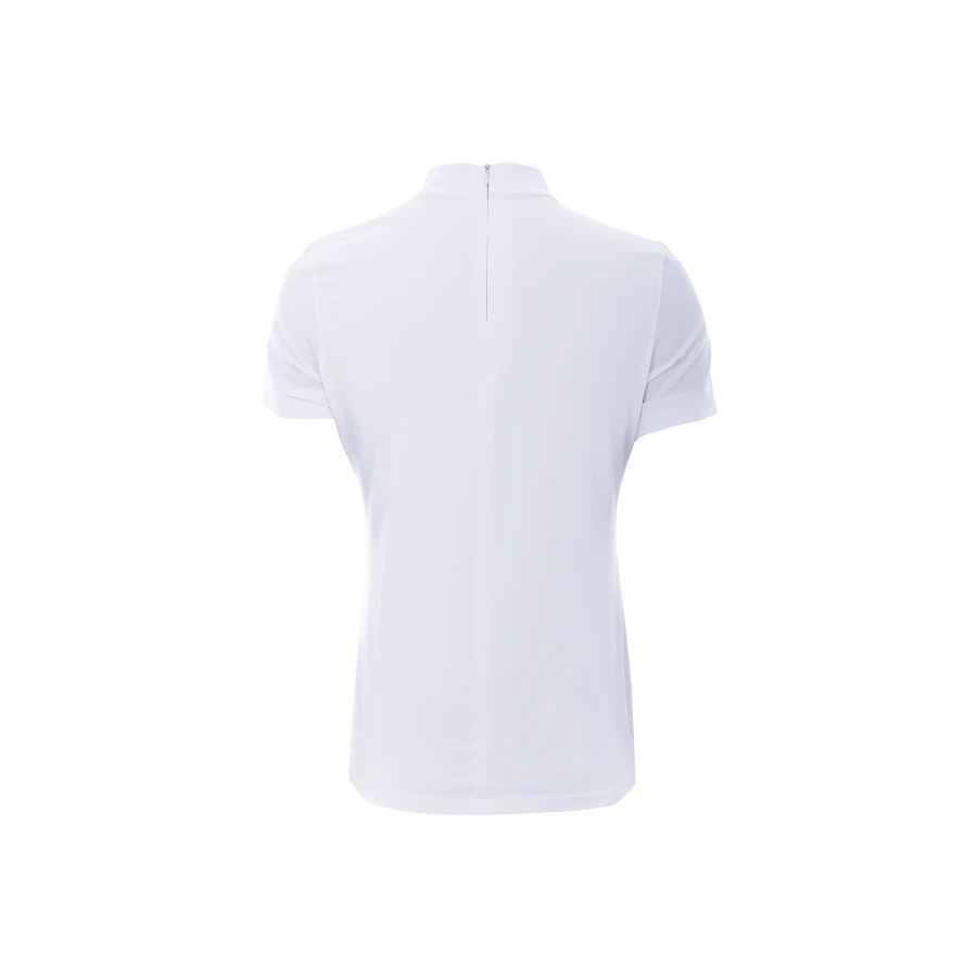 The DALIA Competition Shirt is a short sleeve shirt with a zip up the back & a stand up collar.