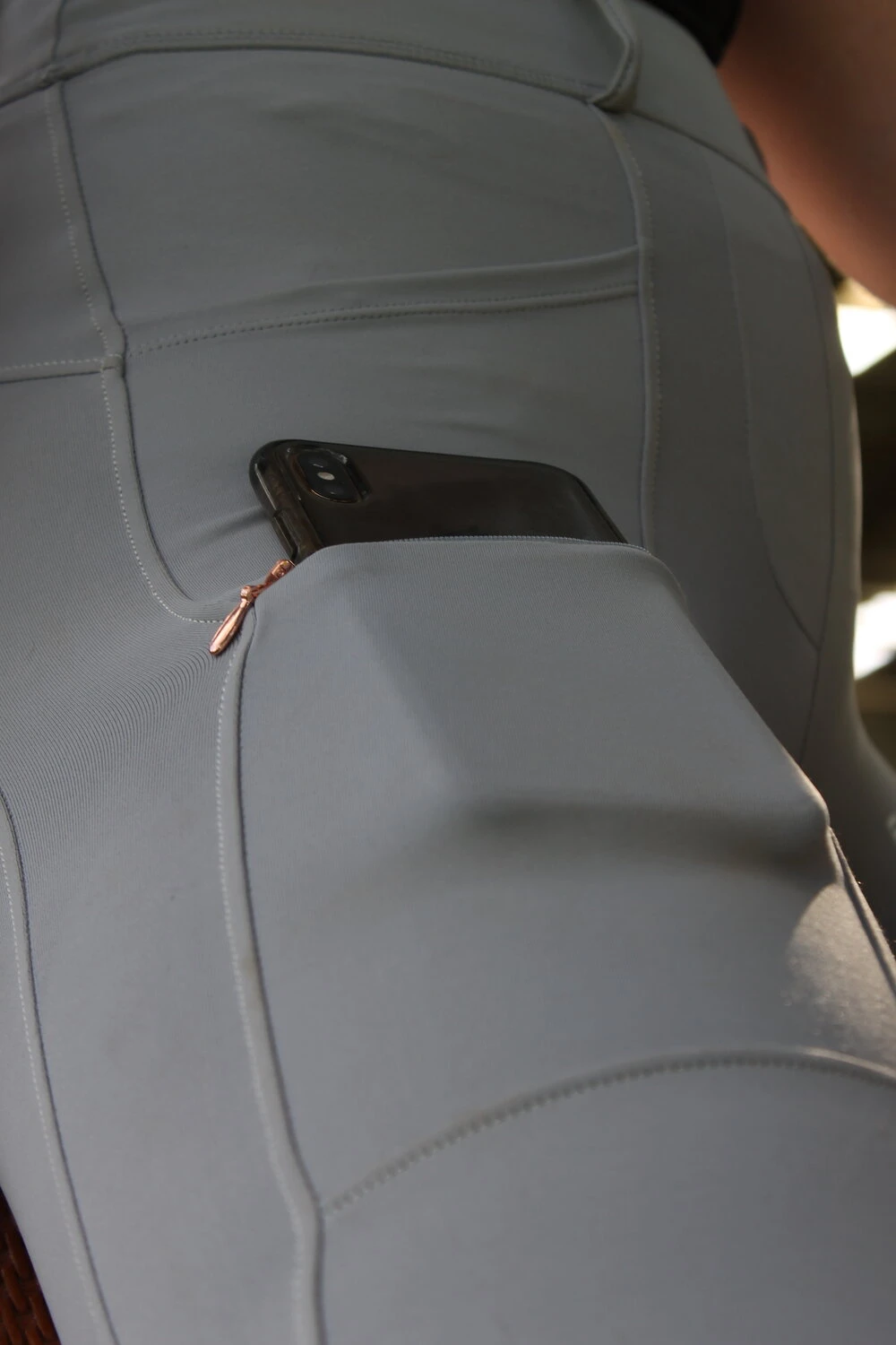 Super cool and comfortable performance tights with a full grip seat, three pockets and belt loops in a light weight and light coloured material for any discipline anytime of year!
