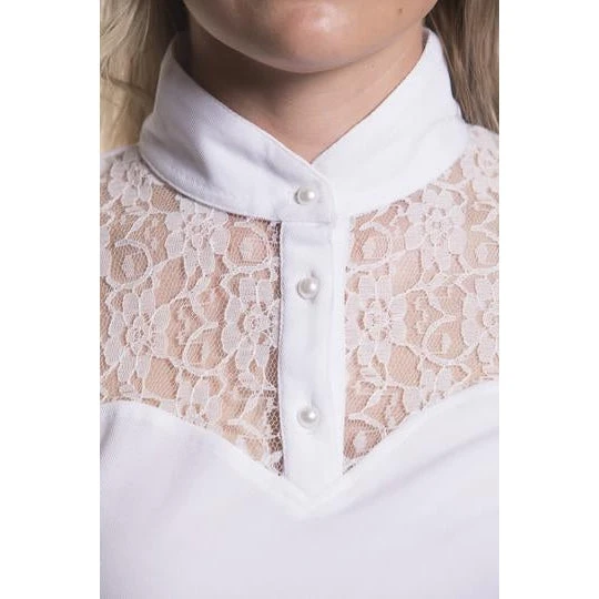 One of our most popular show shirts in aerocool fabric with gorgeous lace insert and pearl buttons.