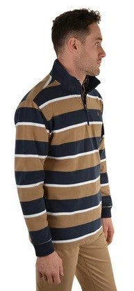 Wrangler Sutherland Stripe 1/4 Zip Rugby Top Tan & Navy Mens